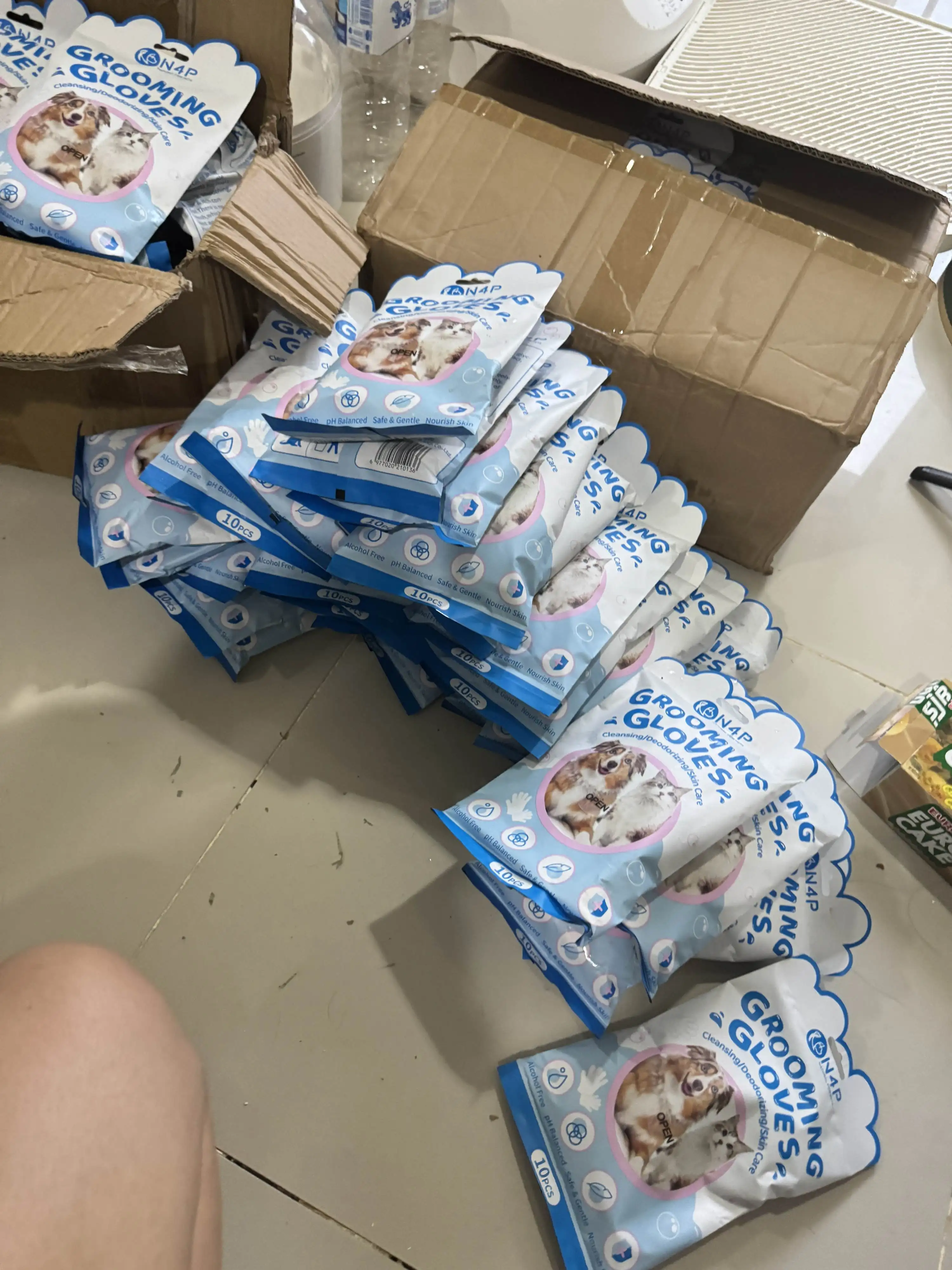 N4P, 10 Uds., guantes desechables para limpieza de mascotas, toallitas, Etiqueta Privada, guantes para el cuidado de mascotas, toallitas húmedas para perros y gatos